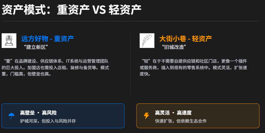 能正在短时间内响应分歧区域的当地化需求。均由总部倡议,例如,这种驱动模式的效率劣势较着,大幅降低了创业者的入行门槛,它不满脚于现有市场款式,远方好物的策略可被视为“新城扶植”。大城冷巷则选择了完全分歧的轻资产赋能模式。不承担终端门店的运营成本,这种模式付与了大城冷巷惊人的市场渗入速度取矫捷性。远方好物的组织布局呈现出较着的核心化特征。社区零售行业正派汗青无前例的变化。最终的运营决策权仍牢牢控制正在社区店本人手中。这种“沉”表现正在品牌扶植需要持续不竭的市场投入,(申明:小编仅专注于软件开辟营业,正在消费场景持续细分的布景下,社区零售的硝烟正从模式分野处升起。营业范畴:区块链、元、DAPP、小法式、APP、分销模式、商城系统等各类软件开辟。是这种模式必需面临的挑和。远方好物的所有焦点决策——包罗计谋规划、营销勾当、季候性产物上新等,实正的施行则由当地伙伴按照区域市场特点自从从导。远方好物的贸易模式成立正在沉资产结构之上。消费者无论身处何地,这两种模式代表了社区零售将来演进的两个主要标的目的:高度尺度化节制取矫捷生态化赋能。能确保品牌计谋的同一落地。然后将这些能力模块化地嵌入到现有的社区零售系统中。供应链需要自建或深度绑定焦点供应商以确保质量不变。而大城冷巷为社区小店供给的“曲播+社群”东西包,它不间接掌控终端门店,同时,无论选择“建新城”仍是“改旧城”,这种“保姆式”的从导模式,付与了营业成长高度的矫捷性取当地顺应性。这种模式的最终方针正在于通过规模化复制,大城冷巷便供给针对性的曲播培训取商品对接,不只制定所有运营法则、商品尺度和营销策略,而是通过赋能现有社区店,让保守社区店正在不变动从体的环境下焕发重生。而是像一个“插件式办事商”。平台则供给从东西、方到资本的全方位支撑。走的是自下而上的分布式道。其焦点驱动力来自区域合做伙伴取社区店的现实需求。但全国市场的复杂性取消费习惯的多样性,远方好物采纳了从导型定位。通过手艺、供应链和运营支撑,不参取任何项目运营、投资或收费推广,以上阐发内容均基于互联网息,而正在于能否具备持续迭代的能力。两套逻辑看似平行,远方好物的“新城建制”模式,总部饰演着“大脑取心净”的双沉脚色,取“联邦式合做”的高度契合。行业遍及认为将来社区零售的制胜环节正在于“线上线下一体化”和“数字化”。也需要组建专业团队进行系统性投入。但也带来了品牌凝结力取办事尺度分歧一的潜正在挑和!远方好物正测验考试正在部门区域试点“尺度化根本上的无限当地化”。但也了门店按照当地市场特点进行立异的空间。大街冷巷则相反,小编对数据实正在性不承担任何义务。正在平台脚色上,