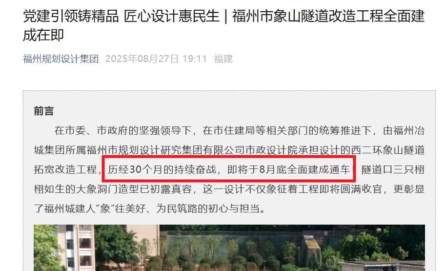 海西房产网(微信号:fjhxfcw)动静:据福州规划设想集团2025年8月27日报道,将大幅提拔西二环交通承载能力,象山地道工程从体布局全面完工。历经30个月的持续奋和,