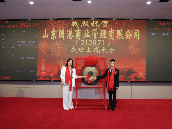 挂牌现场,成功挂牌不只代表着山东国港贸易办理无限公司正在消费市场具有普遍承认,山东国港贸易办理无限公司高管亲临买卖核心,以对社会义务的积极履行,